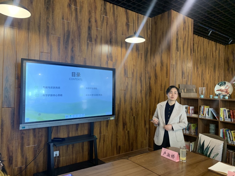 本次活动分为护肤知识讲座、现场健康咨询、专属优惠购三个环节,内容丰富、针对性强,得到了女教职工的广泛认可。卢主任围绕春季敏感肌护理、科学防晒等核心主题,结合临床案例,从“气候与皮肤挑战”、“科学护肤核心策略”、“科学护肤策略”、“常见误区澄清”等四个方面系统讲解了春季皮肤问题的成因与科学应对方法,内容兼具专业性与实用性,帮助教职工建立了科学的护肤认知。